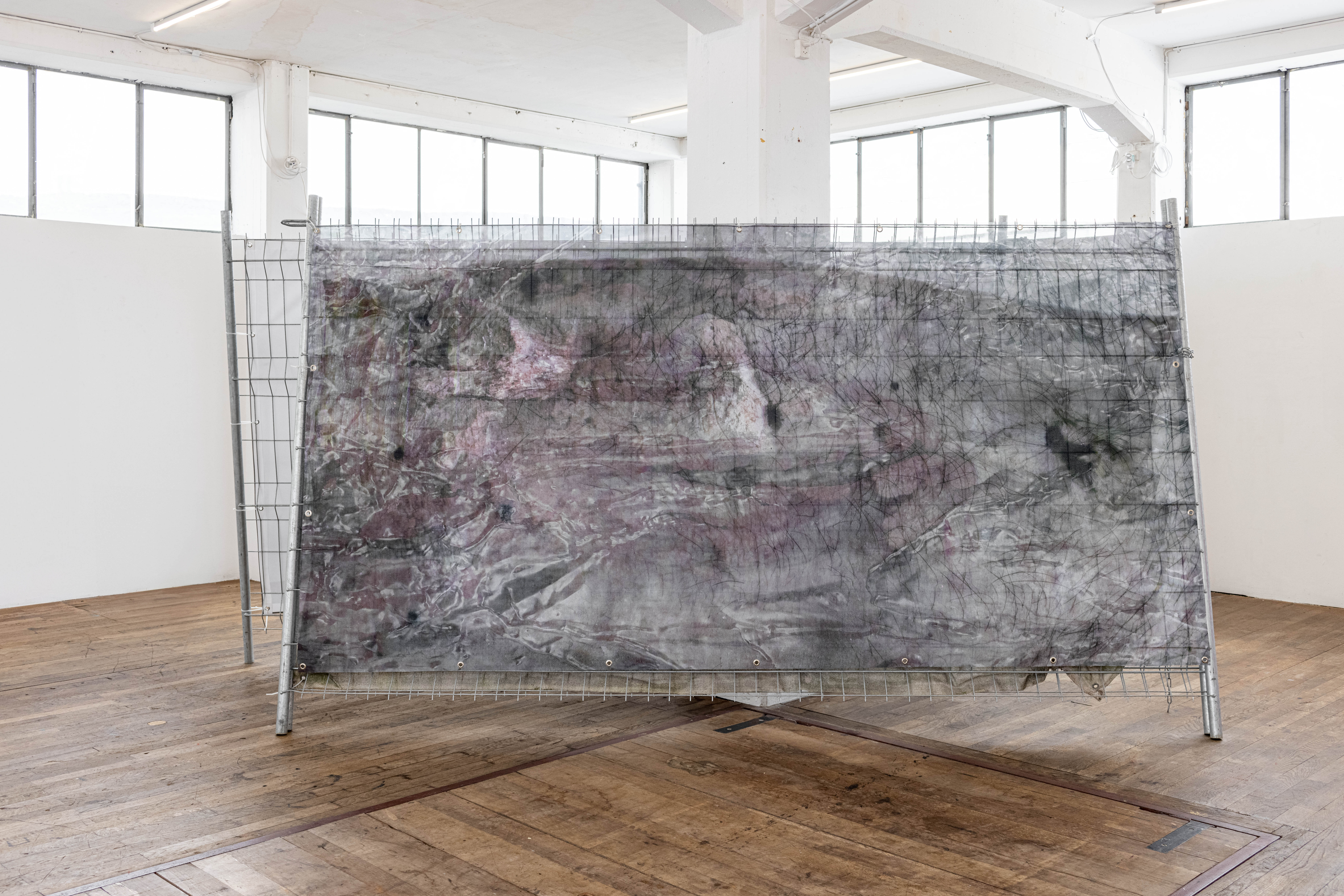 Installation mit Bauzäunen, Digitaldruck auf Mesh-Banner, 350 x 173 cm